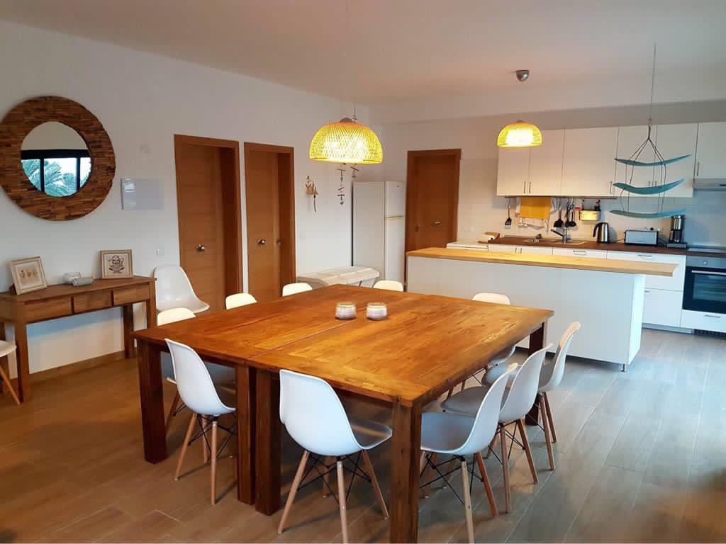 Dentro de las zonas comunes encontraríamos un salón-comedor amplio con cocina abierta 100% equipada que da acceso a un porche rústico perfecto para las comidas o para disfrutar del atardecer al aire libre.